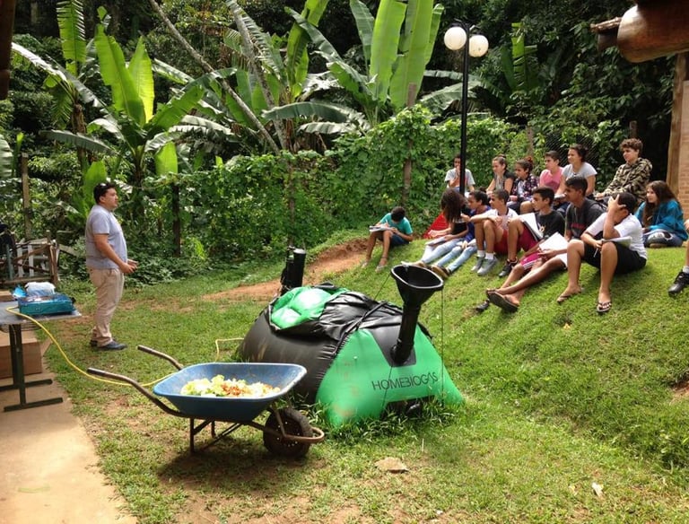 Transformamos resíduos orgânicos o que antes era descartado em biogás limpo, biofertilizante natural e educação ambiental aplicada diariamente.